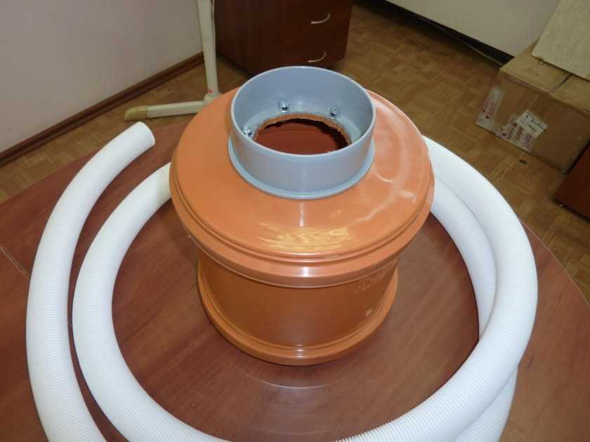 Длины всасывающего шланга обычно не хватает, поэтому его наращивают с помощью гофрированной трубы.