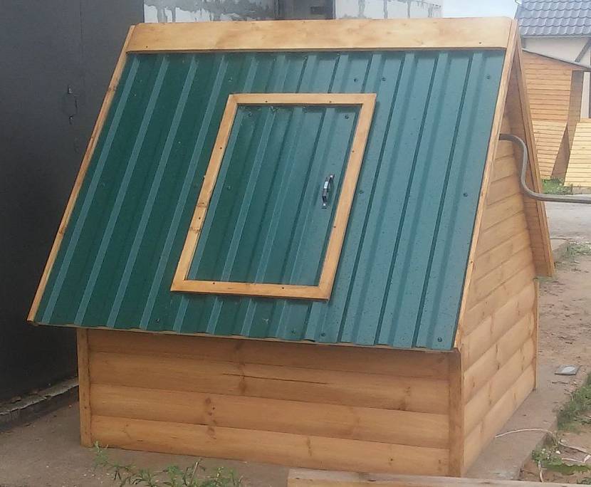 Дверца на домик – это необязательный элемент, однако ее желательно обустроить, если вы хотите, чтобы вода всегда оставалась чистой. Традиционно ее размеры составляют 55х85 см, и она представляет собой щит из сколоченных между собой досок.