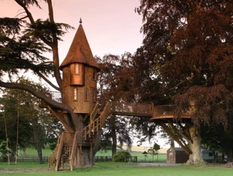 Немаловажное значение имеет и внешнее оформление такого домика на дереве, а также безопасное нахождение в игровом домике. Также дополнительно можно соорудить спиральные горки, подвесную лестницу или канат