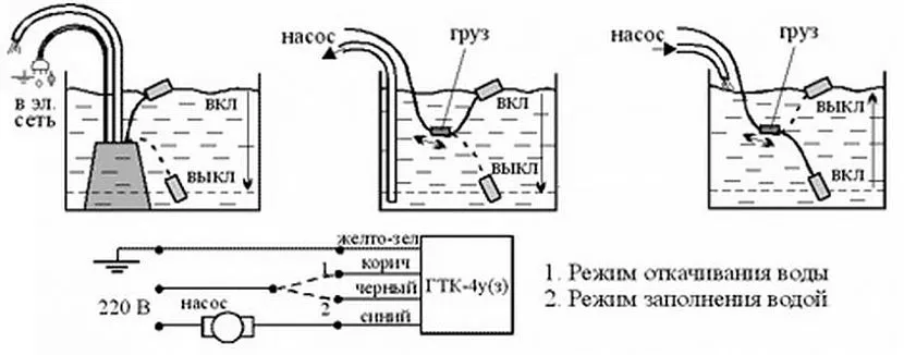 - При наличии вспомогательной, для управления также может быть применён поплавковый выключатель.