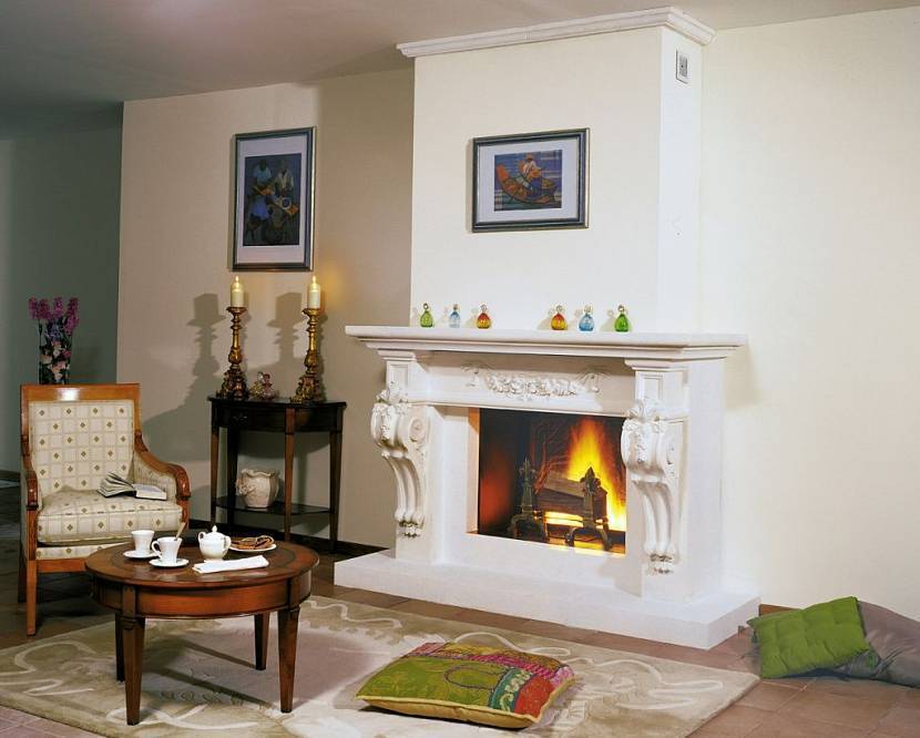 Классические агрегаты обычно устанавливают в стене. Они могут обладать различной формой, цветом и подходят только для комнаты, оформленной в классике. На специальных каминных полках устанавливают часы, статуэтки, придающие порталу изысканную внешность. При выборе такого камина следует учитывать, что комната также должна поддерживать интерьер, соблюдая строгие формы, определенный цвет и форму предметов.