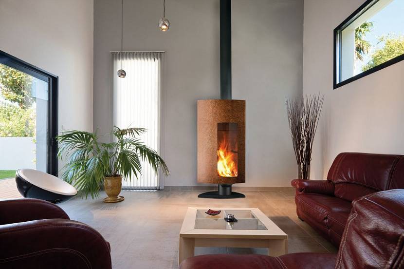 Существуют также подвесные варианты. Главной особенностью такого отопительного агрегата является их непригодность для небольших комнат. Для них требуется большой простор с высоким потолком, но зато они придают атмосфере особый уют и тепло.