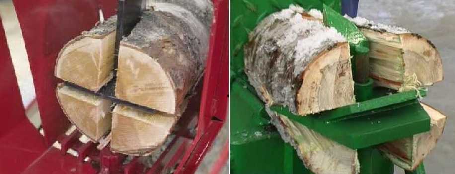 Колун с гидравлическим приводом оснащают сложным резаком, Который разваливает чурбак на несколько поленьев сразу