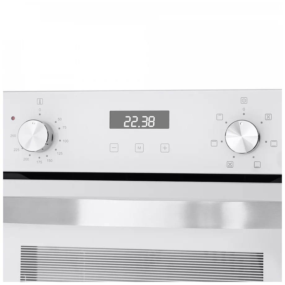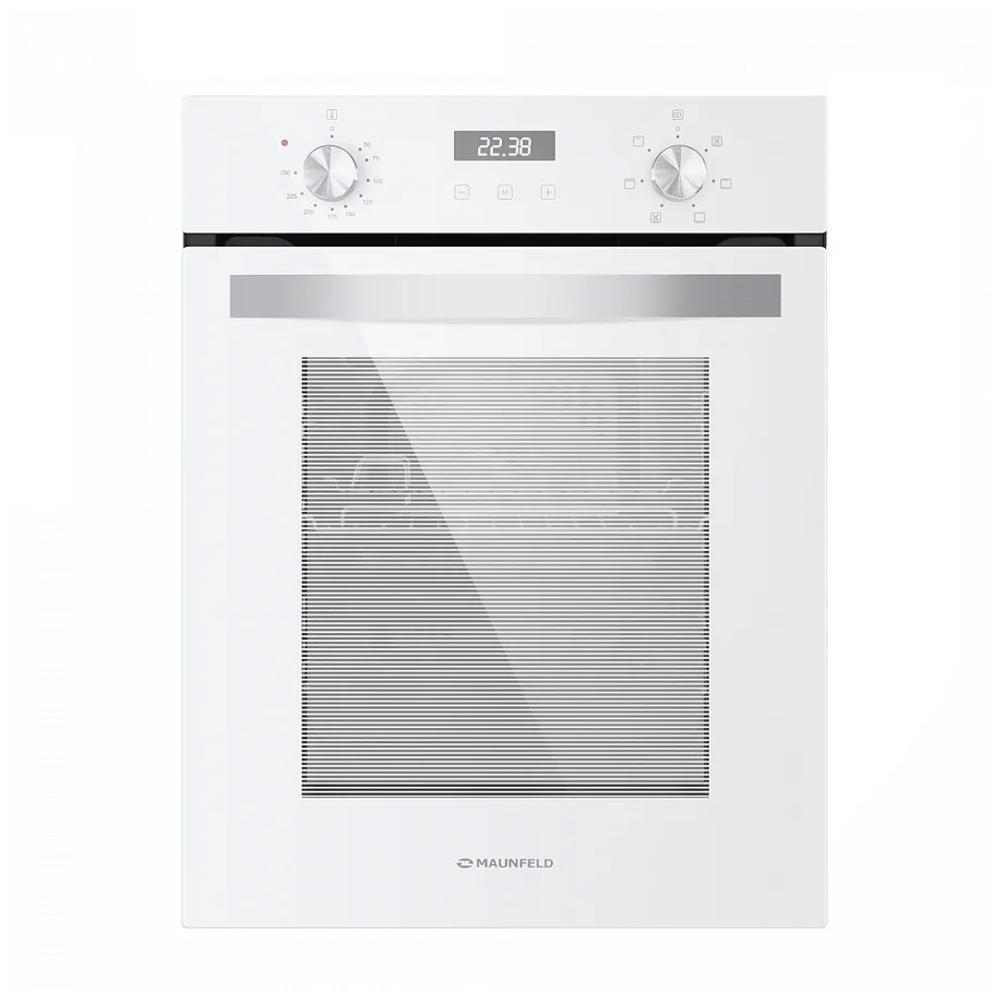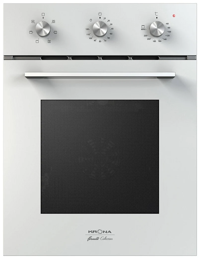 Отметим и оригинальный белый цвет, который нечасто встретишь у встраиваемых духовок – смотрится на кухне симпатично. На панели нет ничего лишнего, управляется техника поворотными утапливаемыми переключателями (исключаются случайные изменения настроек и облегчается уход). Владельцы в отзывах единогласно отмечают, что это хороший и недорогой вариант, который стоит своих денег.
