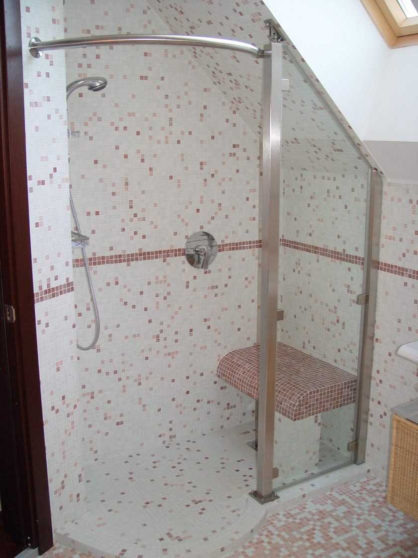 Если места в ванной комнате мало, а хочется расположить сантехнику и мебель с наименьшими потерями квадратных метров, то рекомендуется продумать форму для душевой и оценить финансовые возможности перед покупкой сантехнического оборудования.