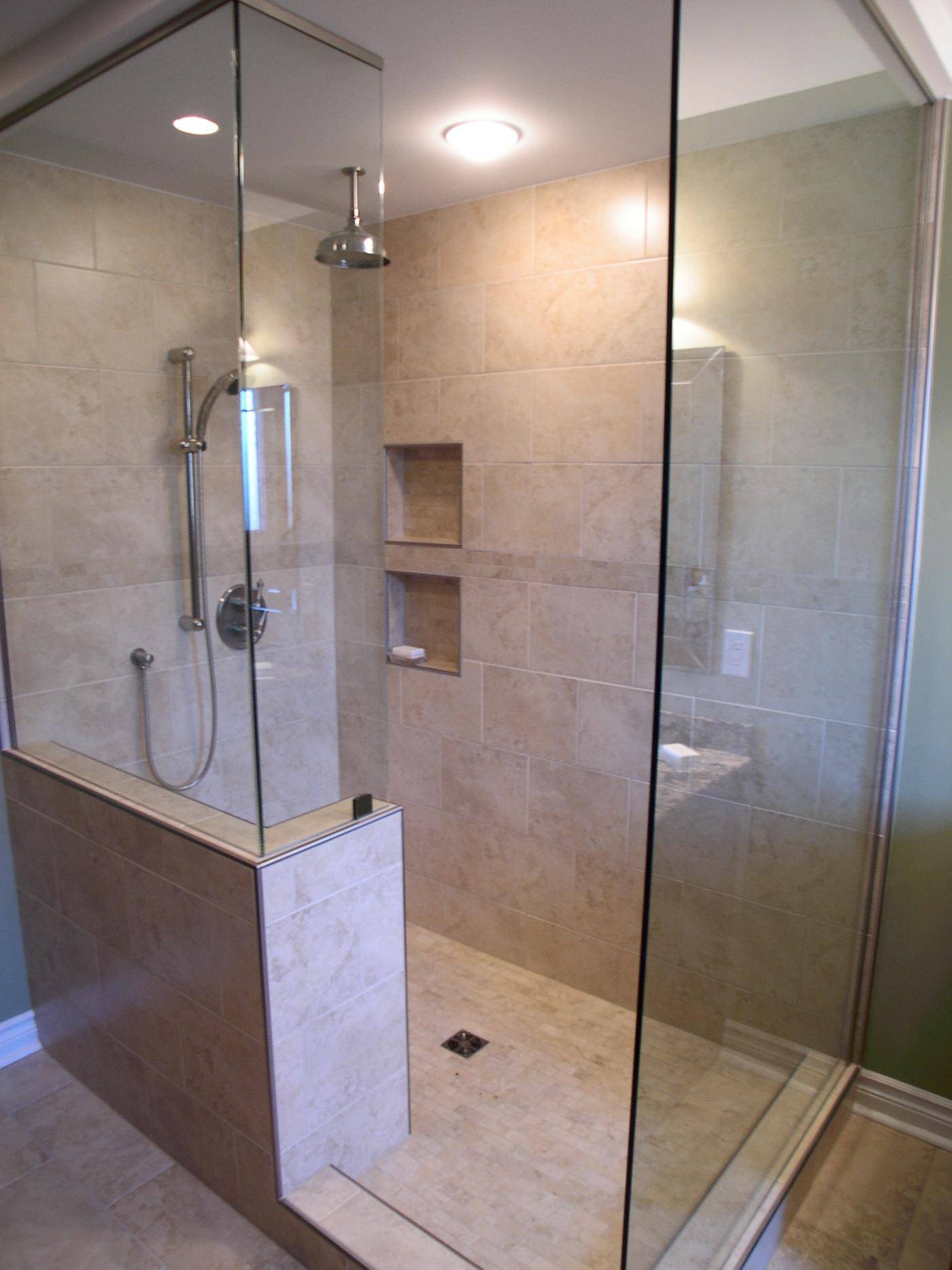 Стены и перегородки душевой кабины могут быть выполнены сразу из нескольких видом материалов. Например, они могут быть наполовину заложены кирпичом, а вторая часть будет из стекла.