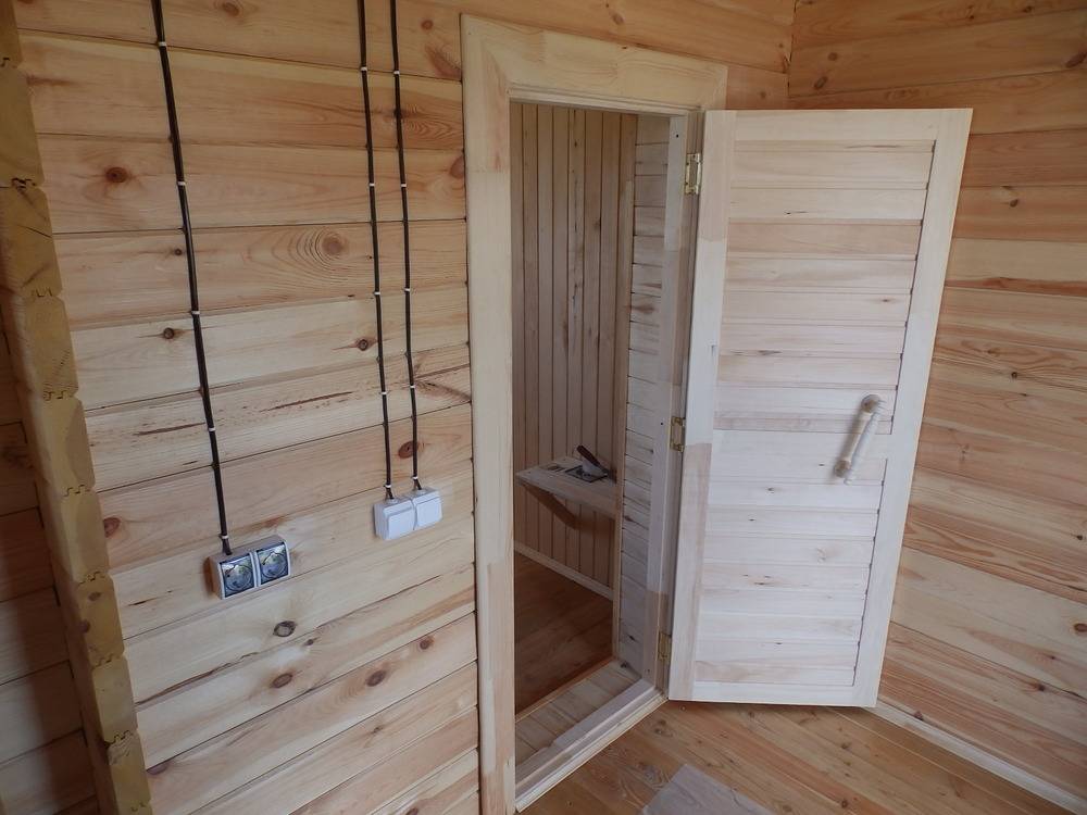 Дверь на входе в баню немного отличается от конструкции на входе в дом