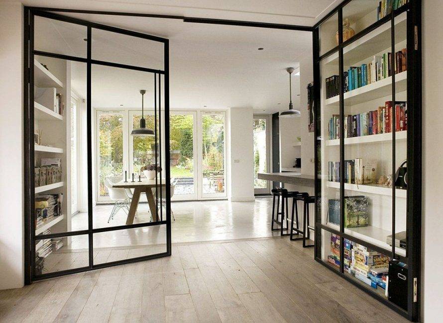 С помощью стеклянных дверей можно зрительно расширить помещение