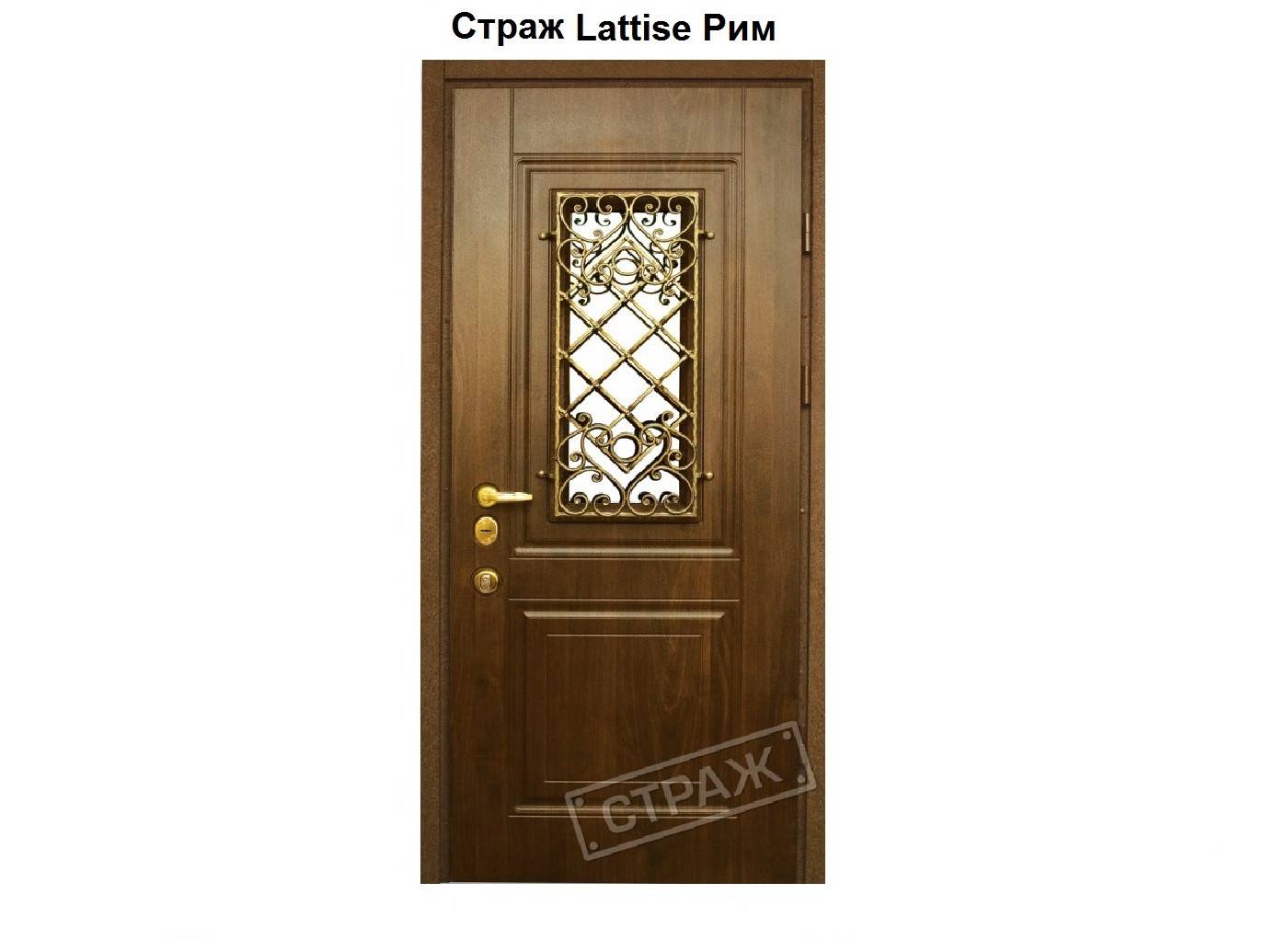 Lattise. Линейка входных дверей изготовлена на базе Prestige и рассчитана на уличное использование. Полотна оснащаются стеклопакетами и металлической кованой решеткой.