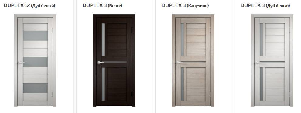 Полотна из коллекции Interi и «Дуплекс» изготовлены в скандинавском стиле. Их особенностью являются: строгие линии в отделке, грубые геометрические формы. Двери из коллекции «Прованс» выполнены в стиле южной Франции — в них присутствует декоративная отделка из матового стекла. Самые популярные расцветки — ясень и венге.
