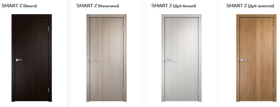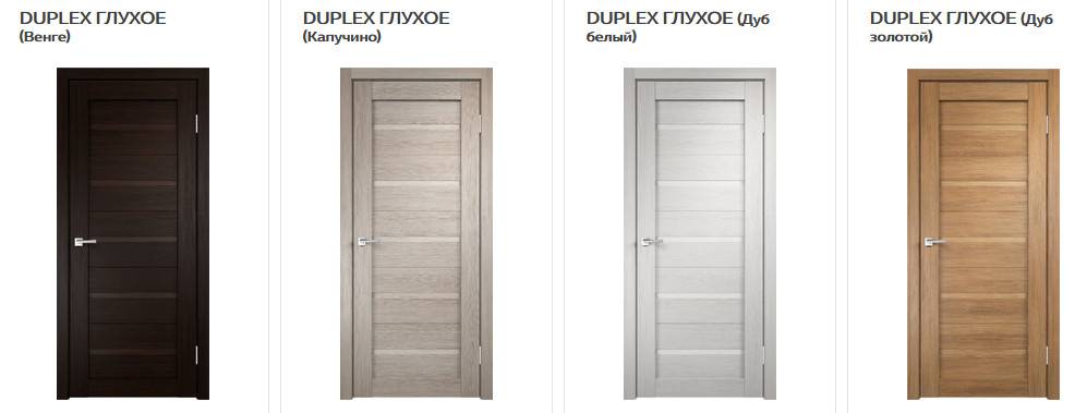 - Широким ассортиментом материалов, используемых для отделки лицевых поверхностей створок и наличников.