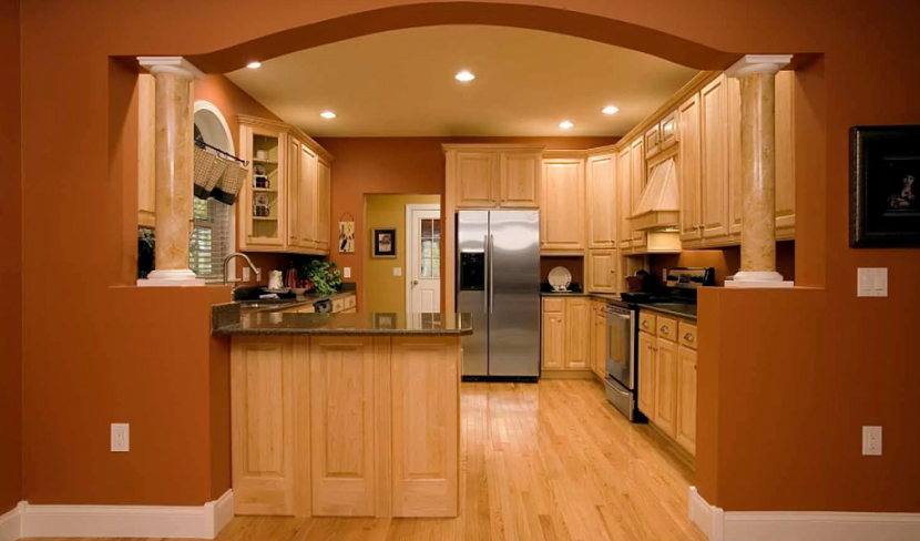 - Что касается цветового решения: рекомендуется использовать в кухне более светлые оттенки, которые у входа в коридор переходят в более темные.
