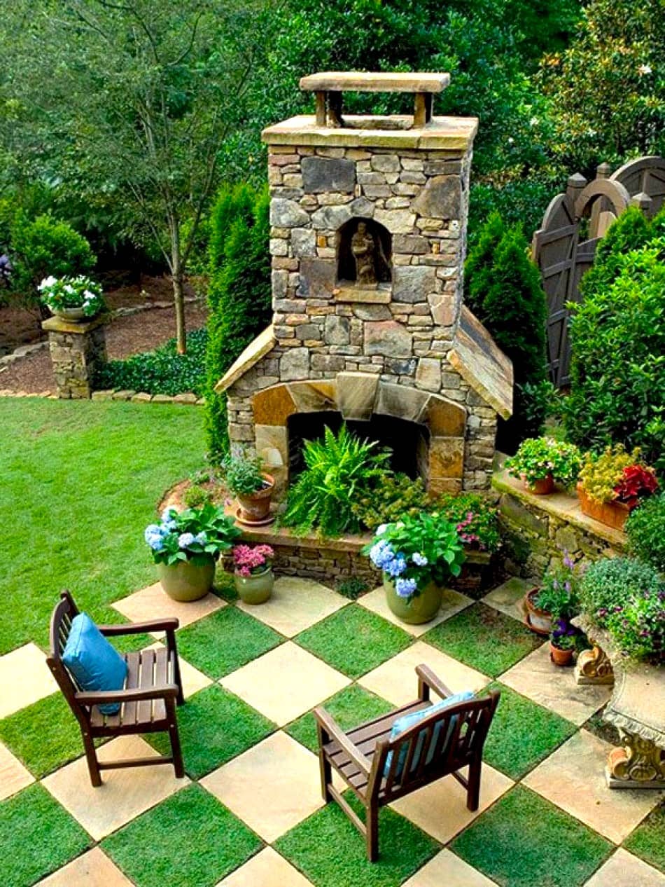 Оригинальное исполнение дачного двора в виде шахматной доски