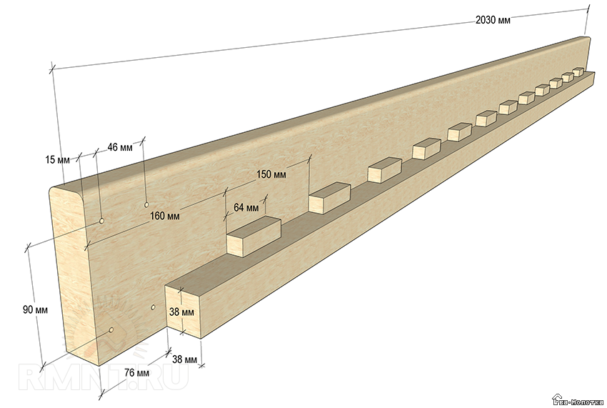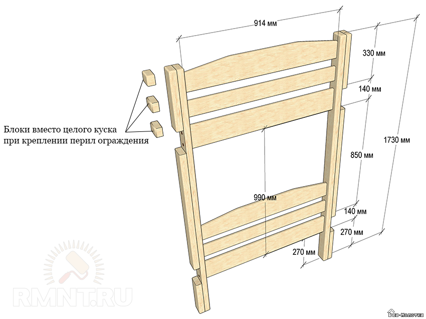| 2 | 20х90х1800 | Перила ограждения, обрезать до нужного размера при монтаже |