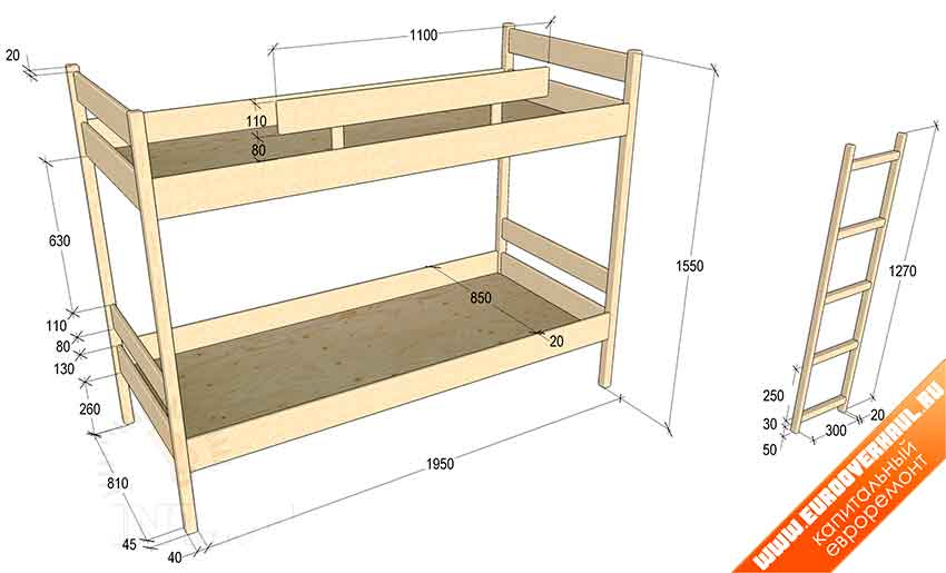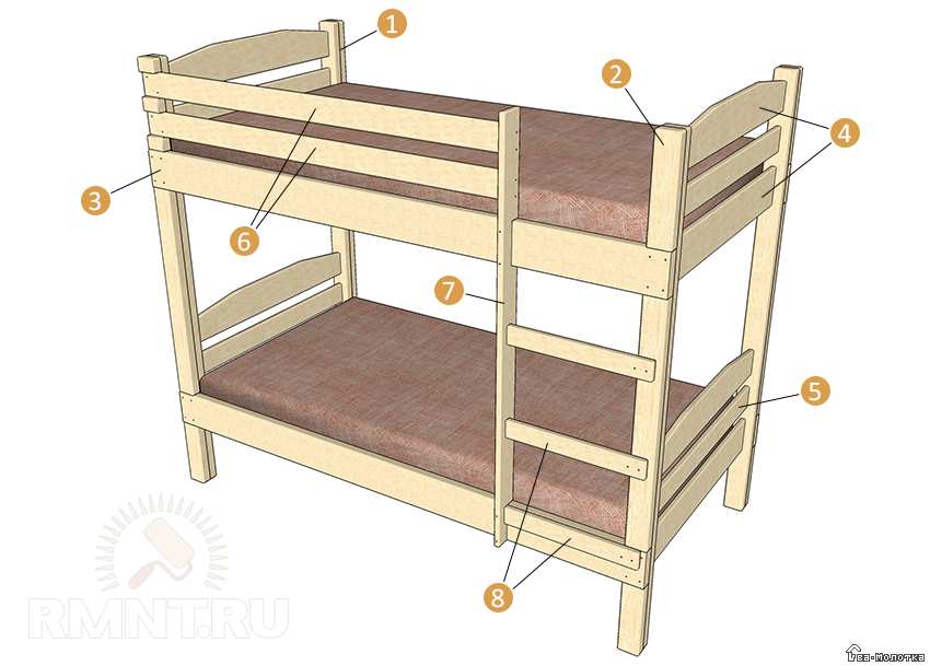 Двухъярусная кровать своими руками: как собрать функциональную мебель из дерева и металла, простые чертежи и схемы | 80+ Фото & Видео
