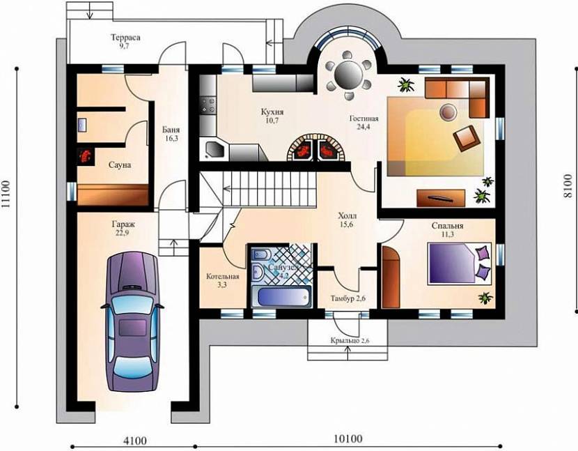 Для оформления первого этажа обязательно выбирают материалы, которые будут использованы не только в отделке стен, но и в облицовке дополнительных сооружений и смотровой ямы.