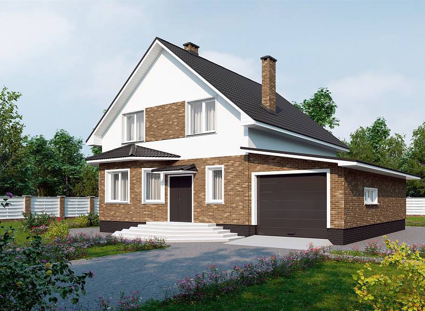 Проект одноэтажного дома с мансардой и гаражом на одну машину