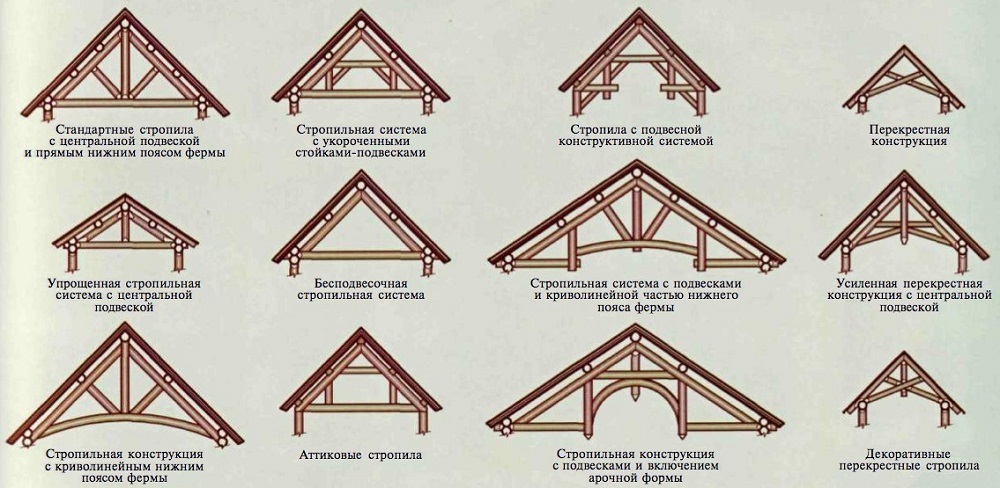 Устройство стропильной системы двухскатной крыши любого из перечисленных видов представляет собой совокупность вспомогательных и опорных элементов. Они распределяют равномерно вес кровельного пирога, а также компенсируют распирающие и изгибающие нагрузки, возникающие между ними.