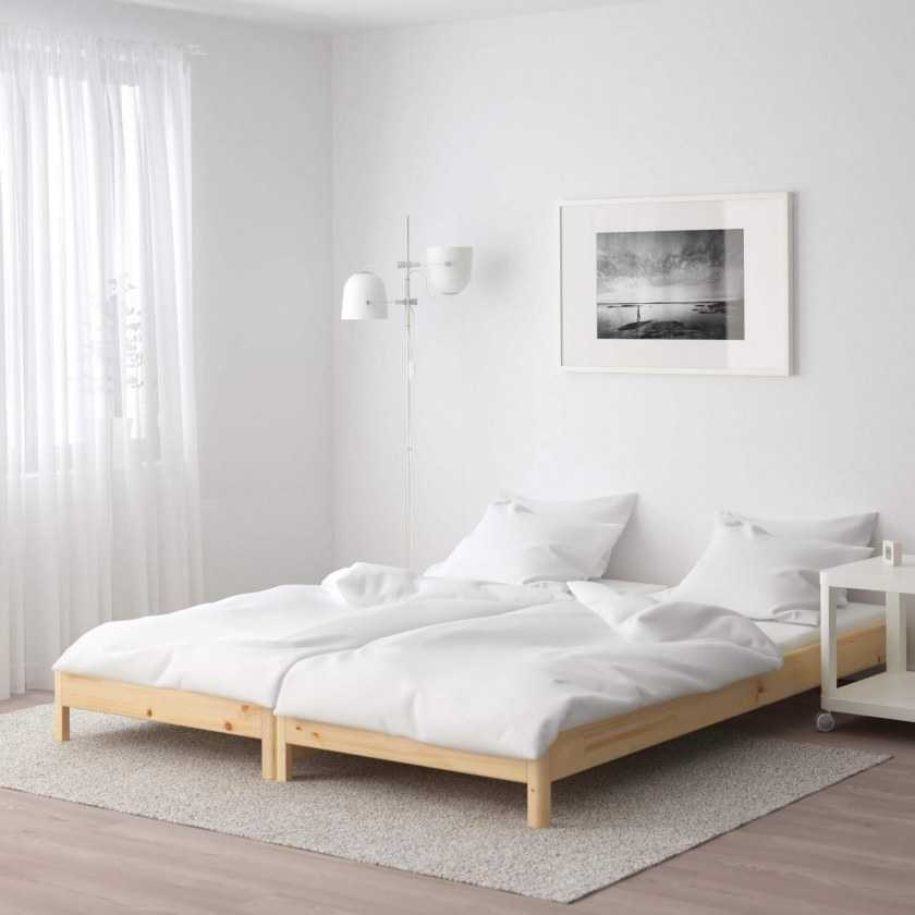 Что касается ламелей, то при их изготовлении стоит выбирать эластичные и упругие породы деревьев. Прекрасным выбором станет сосна или ясень. Как правило, для стандартной двуспальной кровати хватает около 20 штук ламелей. Их ширина может варьироваться в пределах от 5 и до 8 см, и устанавливаются они на раму каркаса с шагом в 5 см.