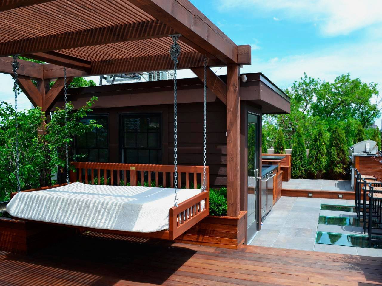 При самостоятельном изготовлении мебели эксперименты приветствуются. Хотя кровать за длительную историю существования конструктивных изменений не претерпела, всегда найдется почва для фантазии. На даче можно соорудить кровать-качели, каркас подвешивают на цепях к потолку или перекрытию. В этом случае изголовье и спинку делают небольшими.