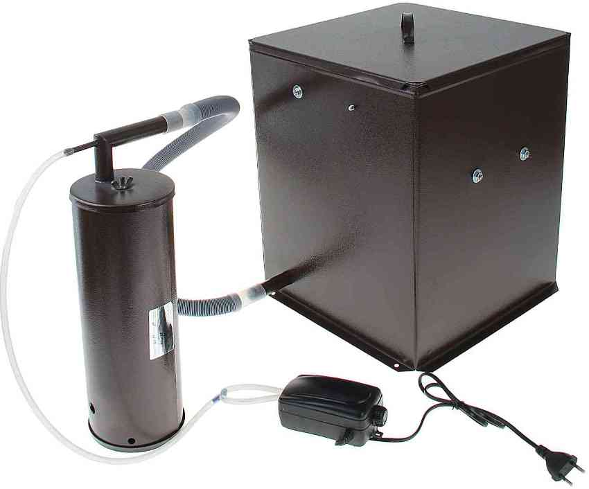 Схемы самодельных дымогенераторов могут немного отличаться, но все они объединены общим устройством. Они включают камеру, в которой происходит процесс пиролиза, расположен источник нагрева, трубопровод для дыма и система охлаждения дыма. Изготовить устройство можно с применением подручных материалов. Можно сделать дымогенератор из огнетушителя, электроплитки или аквариумного компрессора. Рассмотрим эти и другие идеи подробнее.
