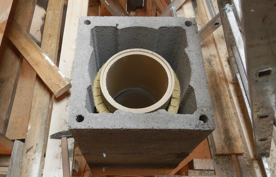 Керамика в отличие от кирпича не получает разрушений при воздействии агрессивных веществ, выдерживает нагрев до 1200 градусов. Этим обстоятельством обусловлена ее высокая долговечность. Благодаря гладкой цилиндрической поверхности внутри, такие дымоходы легко чистятся. Оборудуется специальный кирпичный или блочный канал, внутрь которого они помещаются.