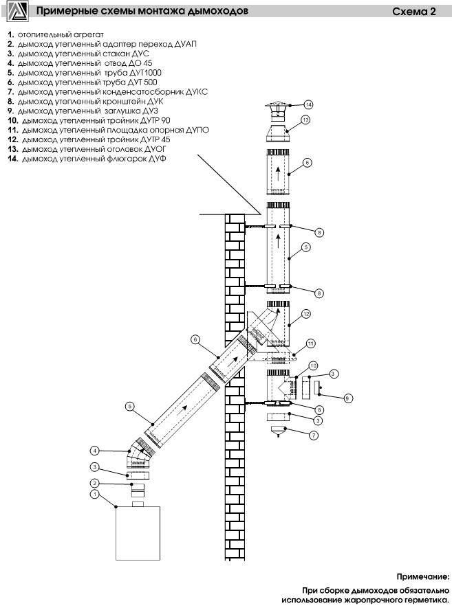Схема правильной стыковки дымовых труб.