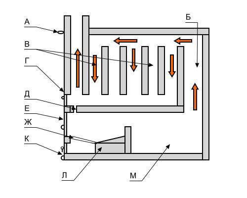 Ступенчатое расположение дымоотвода печи