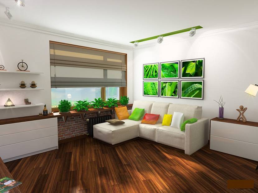 - Белый – классический нейтральный цвет, подходящий под любые стили. В случае с экологическим интерьером выступает как орнамент, на фоне которого намного эффектнее выглядят живые растения.