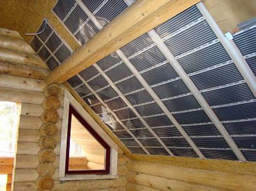 Если на полу недостаточно места, то пленочный обогреватель можно монтировать на любой свободной плоскостиИсточник otdelka-expert.ru