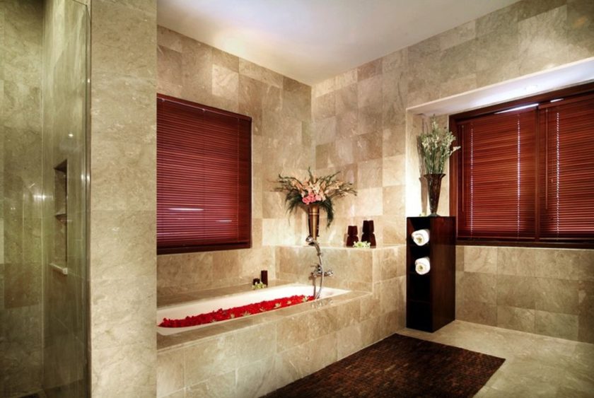 Терракотовый цвет в интерьере гигиенической комнаты в стиле фьюжн