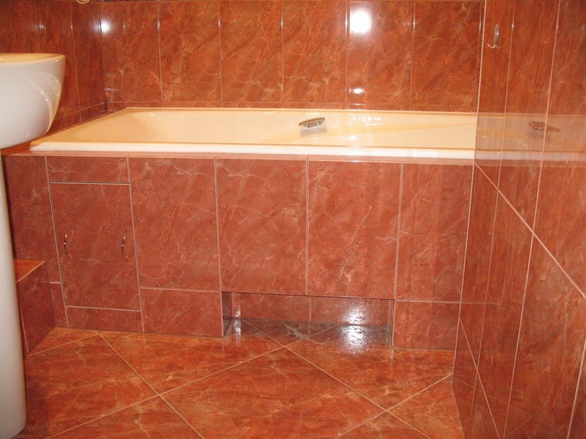 Такой вариант следует рассматривать, если требуется качественно и недорого произвести декорирование ванной комнаты посредством изготовления экрана для чугунной ванны. Порядок действий таков:
