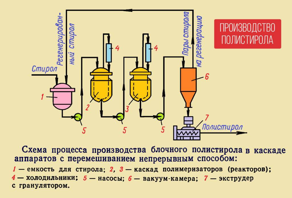 Полистирол представляет собой полимеризованный стирол, то есть является продуктом химической промышленности. Добиться его изготовления можно при помощи различных методов, каждый из которых имеет собственные достоинства и недостатки, а самые популярные мы более подробно рассмотрим в этой статье ниже. При этом в состав полистирола входят только молекулы таких распространенных веществ, как углерод и водород, но делается он из жидкого стирена, а тот, в свою очередь, получают из нефти и каменного угля.