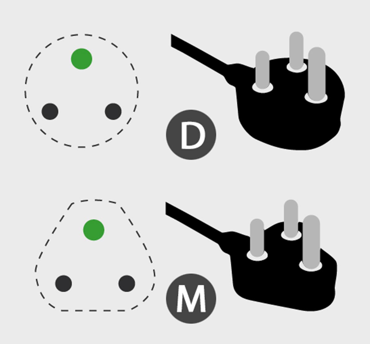 Стандарт похож на британский, но отличается формой контактов на вилке. Расположение контактов аналогично прародителю, а сам тип разрабатывался для применения во время колонизации. В некоторых бывших зависимых от Великобритании территориях типы D и M остались основными.