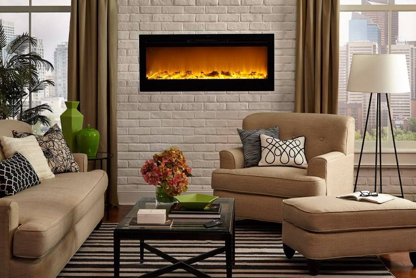 Многие современные хозяева предпочитают украшать свой зал электрическими каминами. Это устройство доставит вам только наслаждение. Модели имитируют тлеющие дрова, реальное пламя, яркость которого можно регулировать. С помощью пульта дистанционного управления вы сможете комфортно управлять устройством.