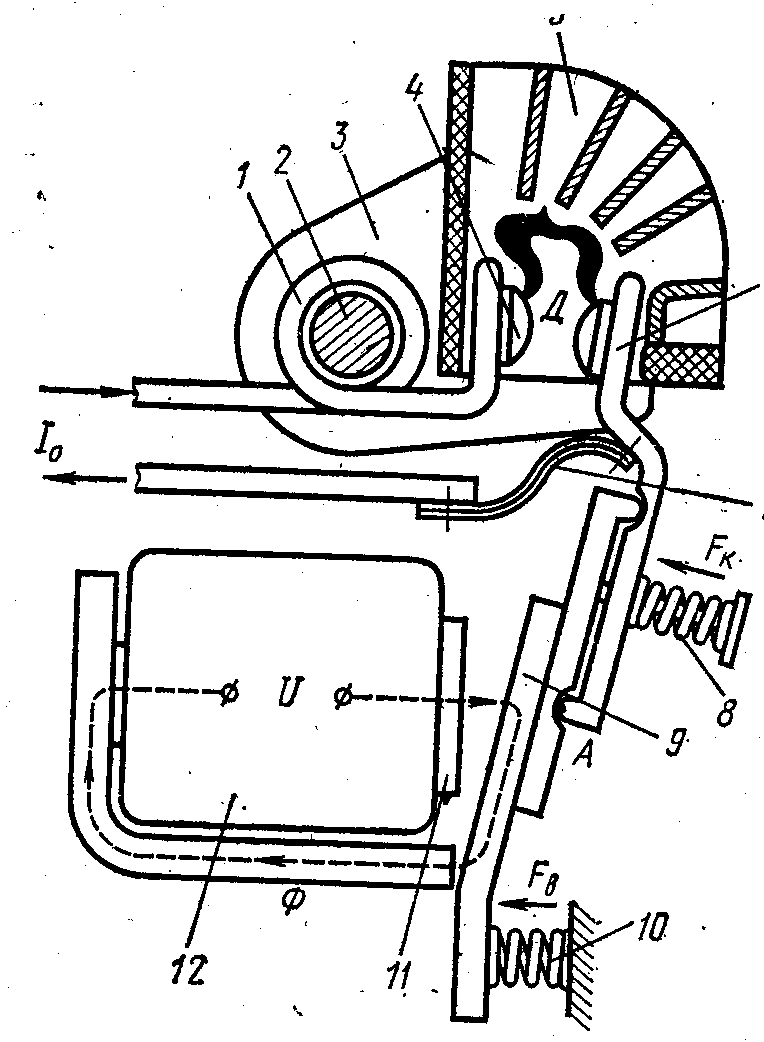 В результате этого пружина легко выталкивает верхнюю часть магнитопровода, размыкая контакты, что приводит к прекращению подачи на нагрузку питания