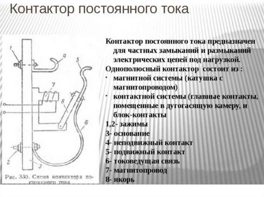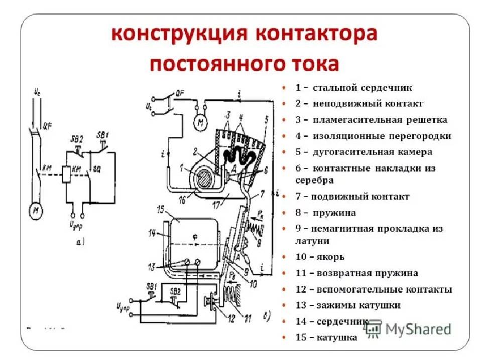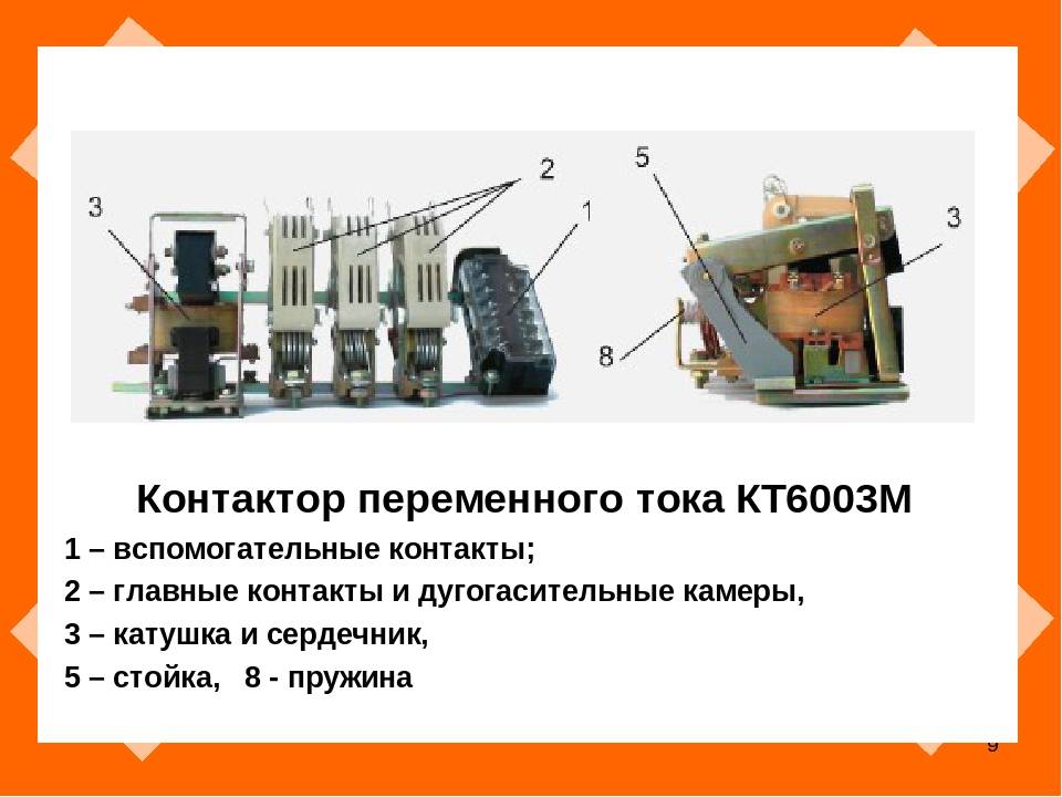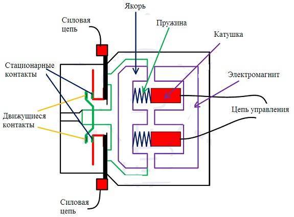 Контактор состоит из нескольких основных частей:
