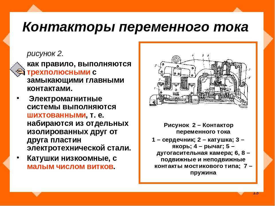 Различают контакторы постоянного и переменного тока.
