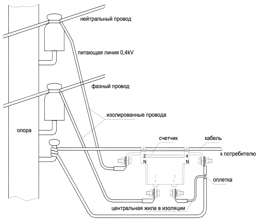 Схема подключения ЭМ, расположенного на общем электрощите этажа (СНиП )