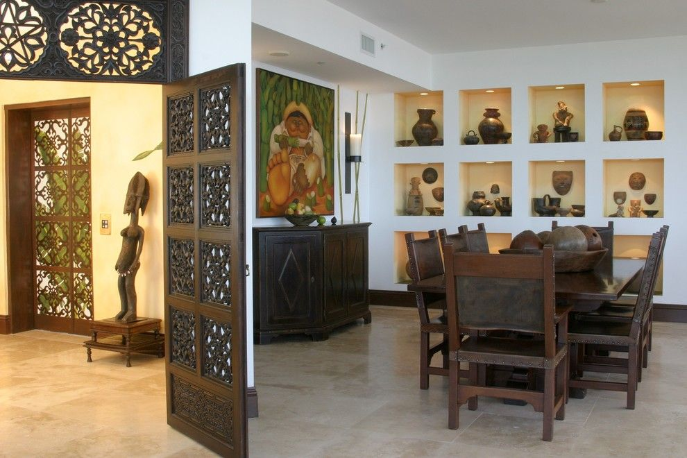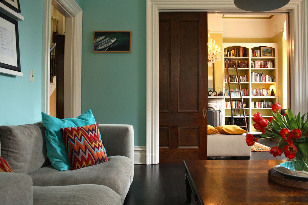 Они яркие. Чтобы не подавлять выразительность, их окружают светлыми стенами. Цвет полотна можно повторить в мебели или других предметах (карнизах, шторах и т.д.). Комбинации темных дверей с такими же темными стенами также допустимы. Такие решения подходят для людей, которым нравятся темные интерьеры. Оттенки можно подбирать из родственной палитры, на 2-3 тона светлее или темнее.
