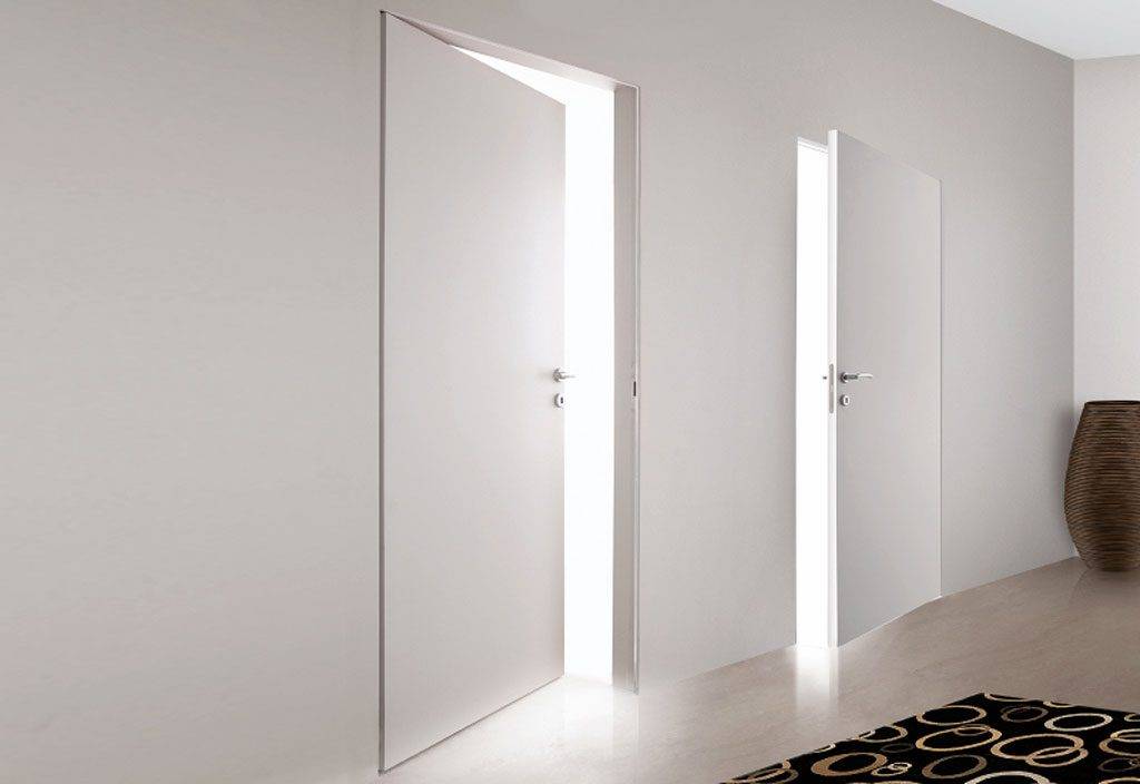 Скрытые двери имеют особое строение. Они предполагают скрытый короб из алюминия, имеющий внутренний или наружный тип открывания, и потайные петли. Скрытый монтаж позволяет спрятать основные части короба, отвечающие за функционирование двери, под отделкой стен. Изготавливается конструкция из анодированного алюминия, которому присуща высокая степень качества.
