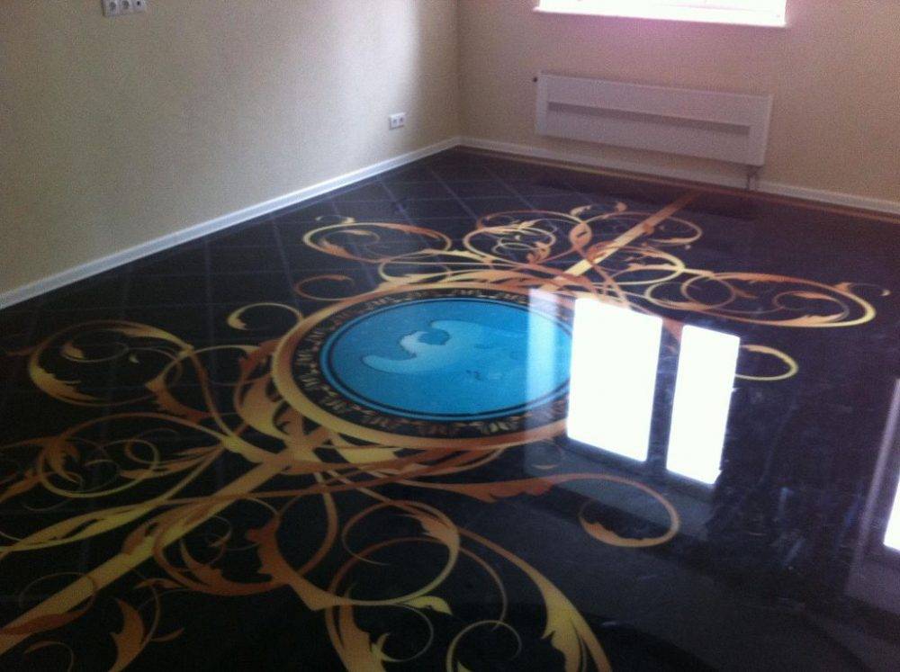 Готовое полимерное покрытие смотрится привлекательно и оригинально – на нем нет швов, как на линолеуме. Качество декора зависит от мастерства мастера – если Вы хотите получить красивое дизайнерское решение, обратитесь к профессионалам.