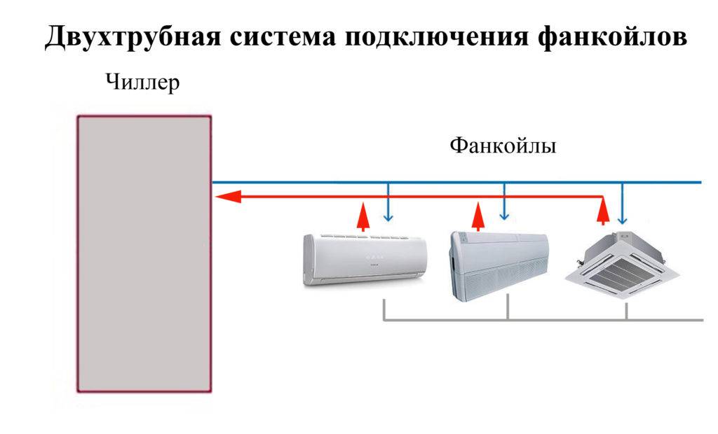 - Фанкойлы – местные калориферы, обладающие функциями обогрева\охлаждения.