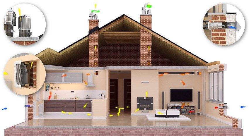 Элементы обустройства естественной системы приточно-вытяжной вентиляции частного дома