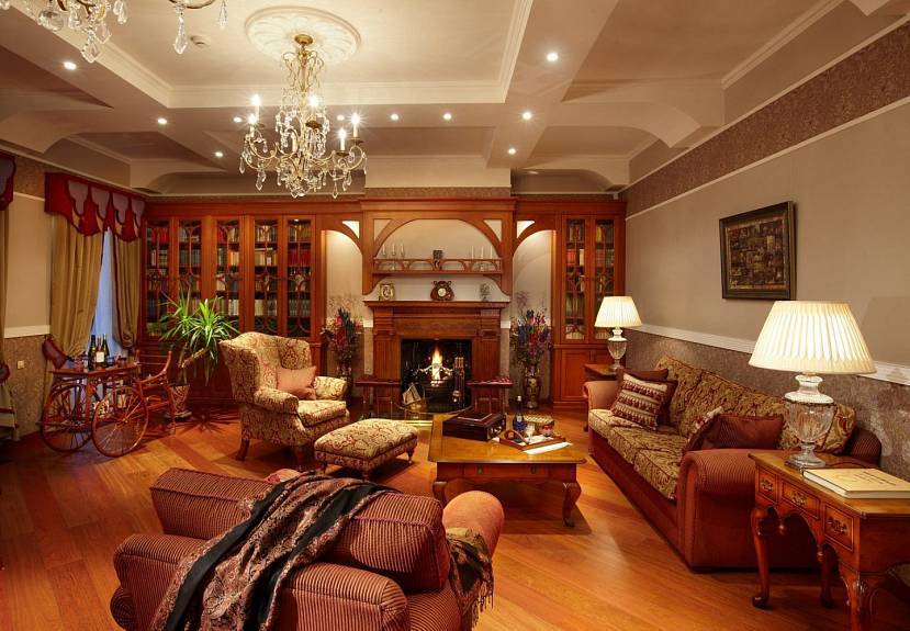 Дворцовый стиль. Изысканный интерьер, лучше всего подходящий для домов старого типа или больших особняков. В нем сочетаются высокие потолки, натуральное дерево, огромные окна и обилие дорогого декора.