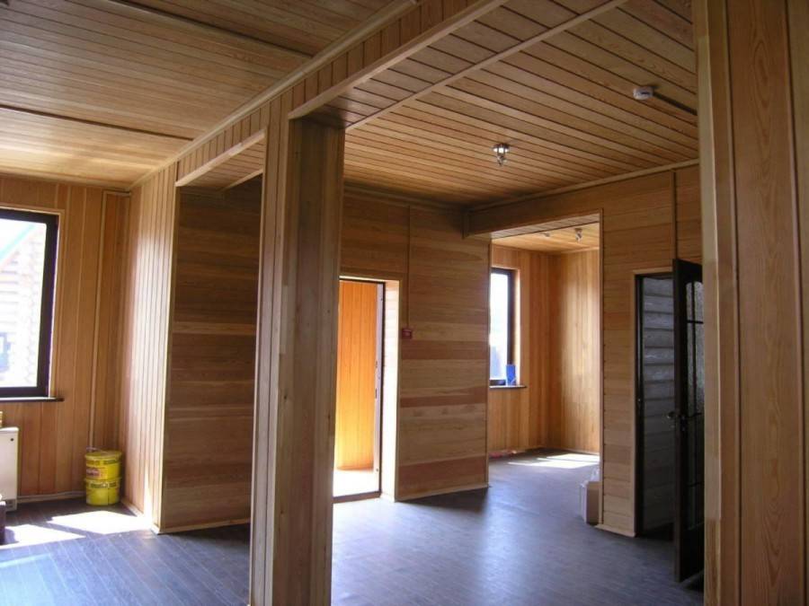 Внутреннюю отделку лучше делать при помощи вагонки, так как ее проще установить на стенную или потолочную поверхности. Для бани или сауны, лучшим решением будет использование вагонки из осины или липы. При повышении температуры она не выделяет токсины, поэтому совершенна безопасна для здоровья человека.