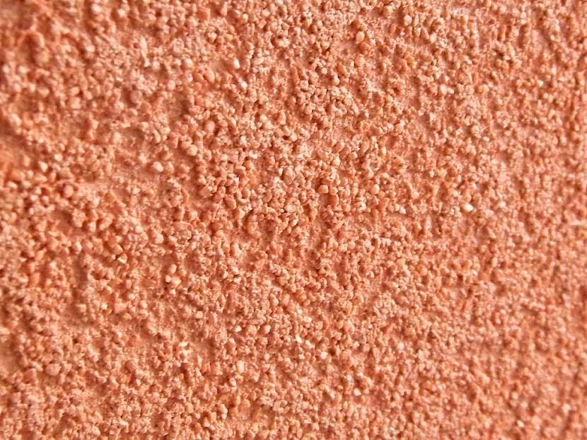 Если в составе краски будут содержаться цветные твердые частицы, поверхность будет с эффектом велюра или бархата. При добавлении наполнителя, в который входят такие элементы как кварцевый песок или ракушки, рисунок будет похож на песчаную поверхность (Атакама).