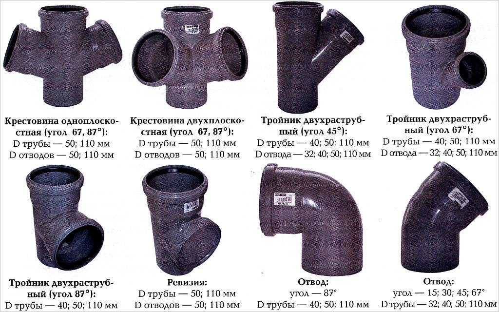 Устройство фанового стояка требует использования самых обыкновенных труб и деталей для присоединения. Детали производятся из металла или пластика. Для монтажа системы вам понадобятся следующие детали: