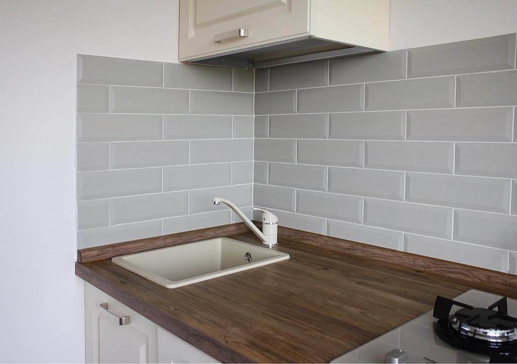 Самый распространенный материал для установки кухонного фартука – это керамическая плитка. Помимо эстетических свойств она обладает всеми необходимыми для отделки рабочей стенки качествами:
