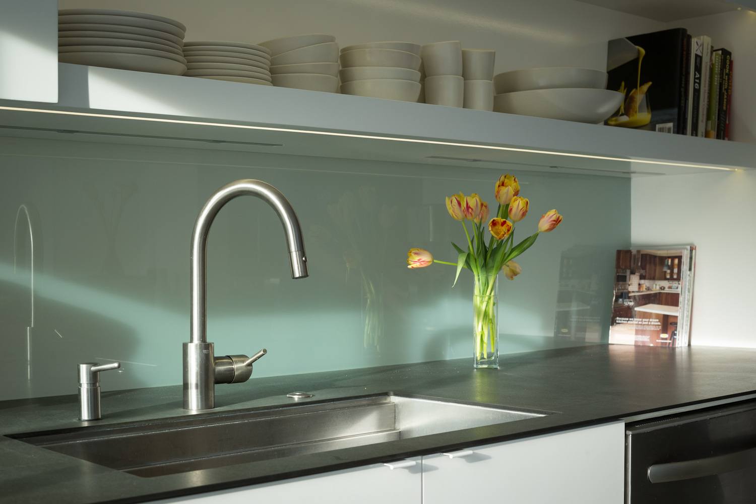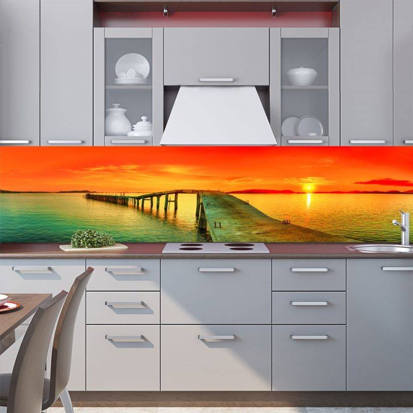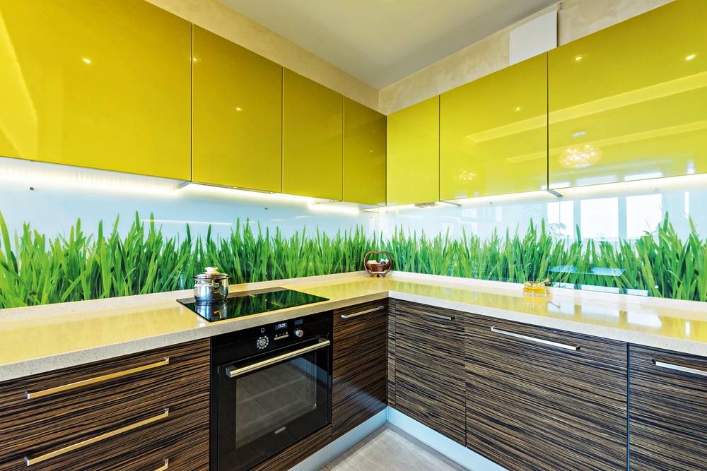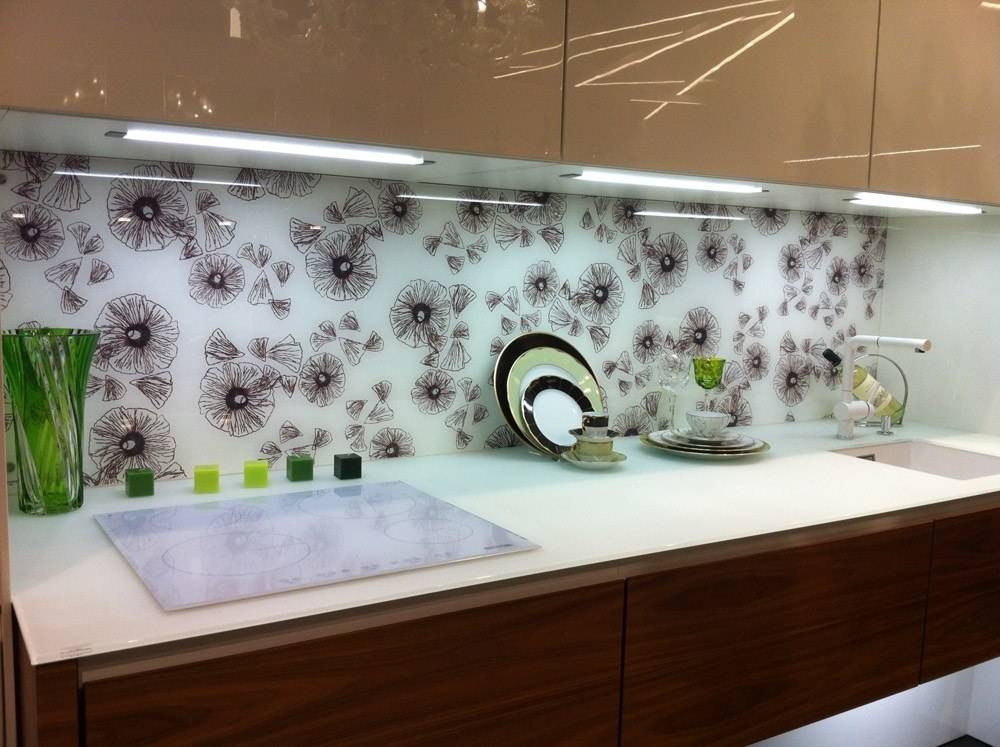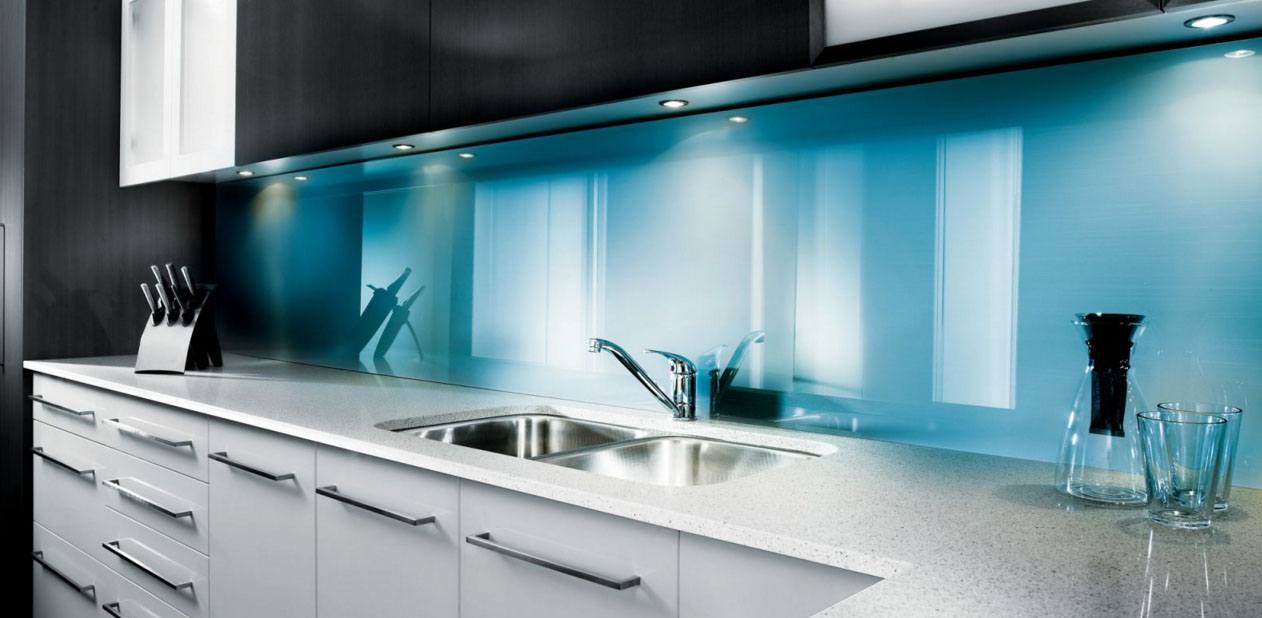 Стеклянный фартук для кухни: варианты дизайна поверхности